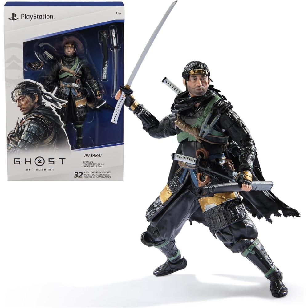 PlayStation, Ghost of Tsushima, 6” Jin Sakai Samurai Action Figure & 2 Accessories, The Shapes Collection, for PS5 Fans & Collectors Ages 17+(6″ Jin Sakai Sumarai Figure)